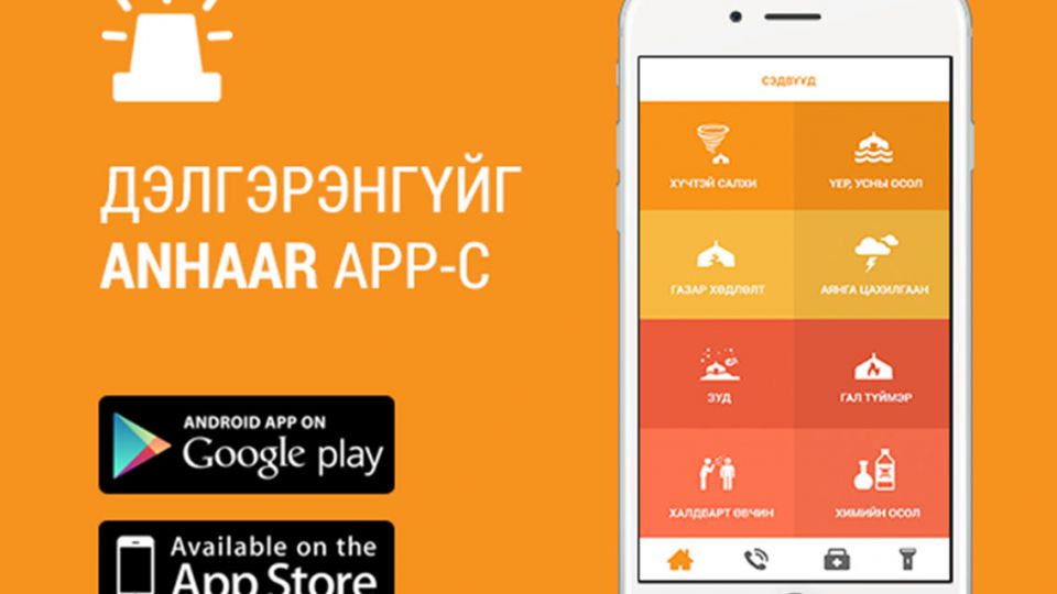 Ард иргэдэд гамшгийн эрсдэлийг бууруулах мэдлэг, ойлголтыг сонирхолтойгоор хүргэх ANHAAR аппликэйшн хүргэж байна. Та өөрийн барьж байгаа гар утаснаасаа хамааран Playstore болон Appstore-оос татаж суулгаарай.