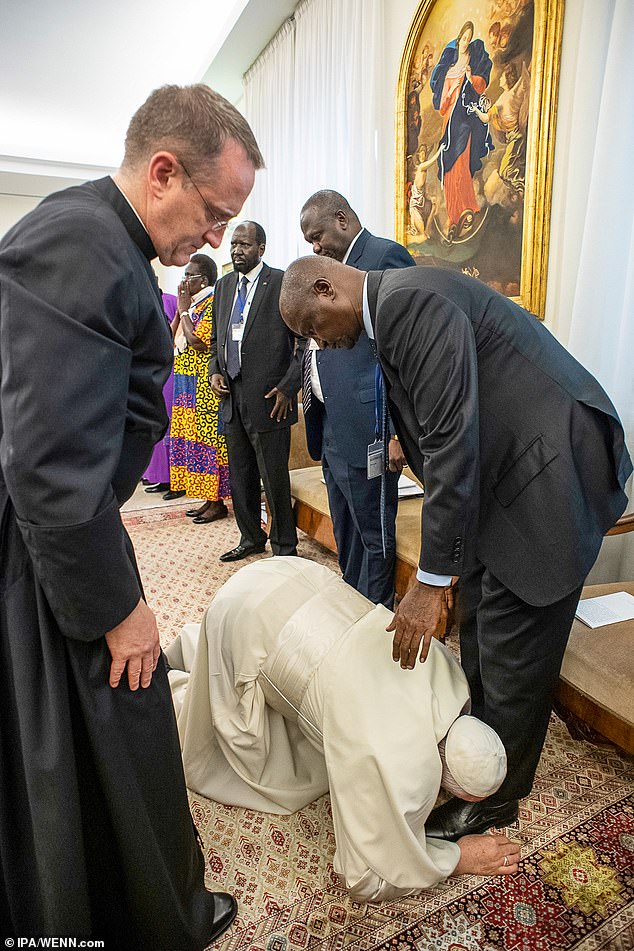 82 настай Ромын Пап Франсис үүнээс өмнө Өмнөд Суданы удирдагчдын хөлийг үнсч, олны гайхшралыг төрүүлж байсан билээ. Энэ үйлдлээрээ тэрбээр дайныг зогсоохыг уриалсан юм.