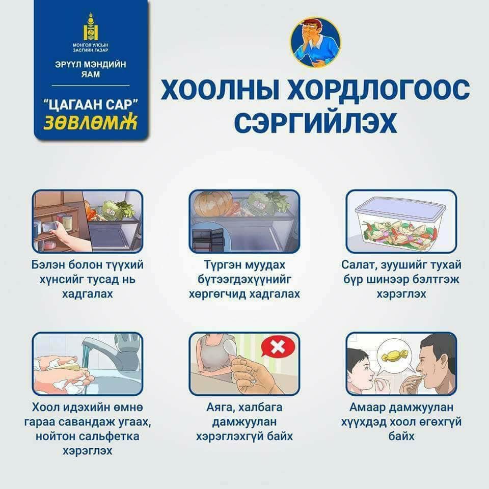 Баяр ёслолын өдрүүдэд иргэд, ард олон түргэн муудах салат зуушийг зөв хэрэглэн хоолны хордлого болохоос өөрийгөө болон үр хүүхдээ сэрэмжлүүлэн амьсгалын замын халдварт өвчин, элдэв осол гэмтэлээс анхаарал болгоомжтой байхыг Эрүүл мэндийн яамнаас сануулжээ.