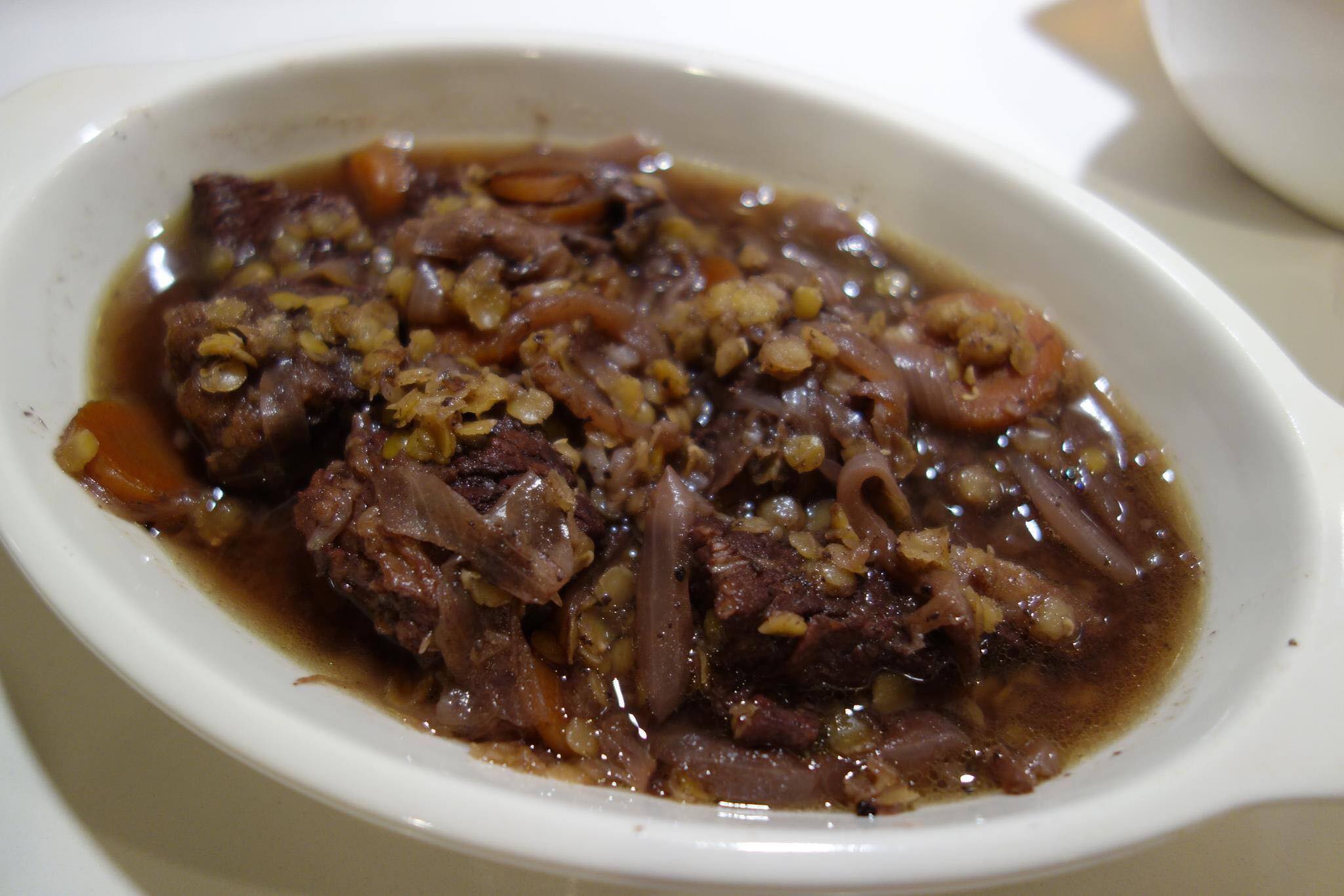 5. Буцалсных нь дараагаар нитгэлийг нь шүүрдэж аваад, сайтар таглан, зөөлөн гал дээр 1 цаг чанана. Арай жижиг савны таг, жижиг жигнүүр, cooking paper гэх мэтийг шөлөн дэх махан дээрээ тавиад чанавал, мах илүү зөөлөрч, шөл нь ч гоё амттай болно.