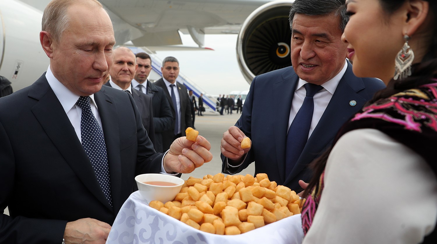 ОХУ-ын ерөнхийлөгч хэдэн өдрийн өмнө Кыргызстан улсад айлчилсан билээ. Түүнийг онгоцноос буусан цагаас л Кыргызстаны ерөнхийлөгч Сооронбай Жээнбеков угтан авч үйлчилжээ.