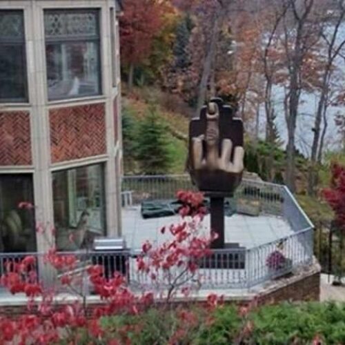 Энэхүү хачирхалтай зураг нь Америкийн бизнесмен эр Ален Марковицын эзэмшлийн байшингийн тагтан дээр байрладаг. Учир юу гэвээс эхнэр нь түүнээс салж өөр газар амьдрах болсон байна. Энэ үйлдлээс болж Ален эхнэрийнхээ хажуугийн байшинг худалдан авч тагтан дээр нь дунд хуруу гаргасан дүрс бүхий самбарыг байрлуулах болжээ. “Энэ нь би чамд хайртай бүхнээ зориулсан байтал чиний […]